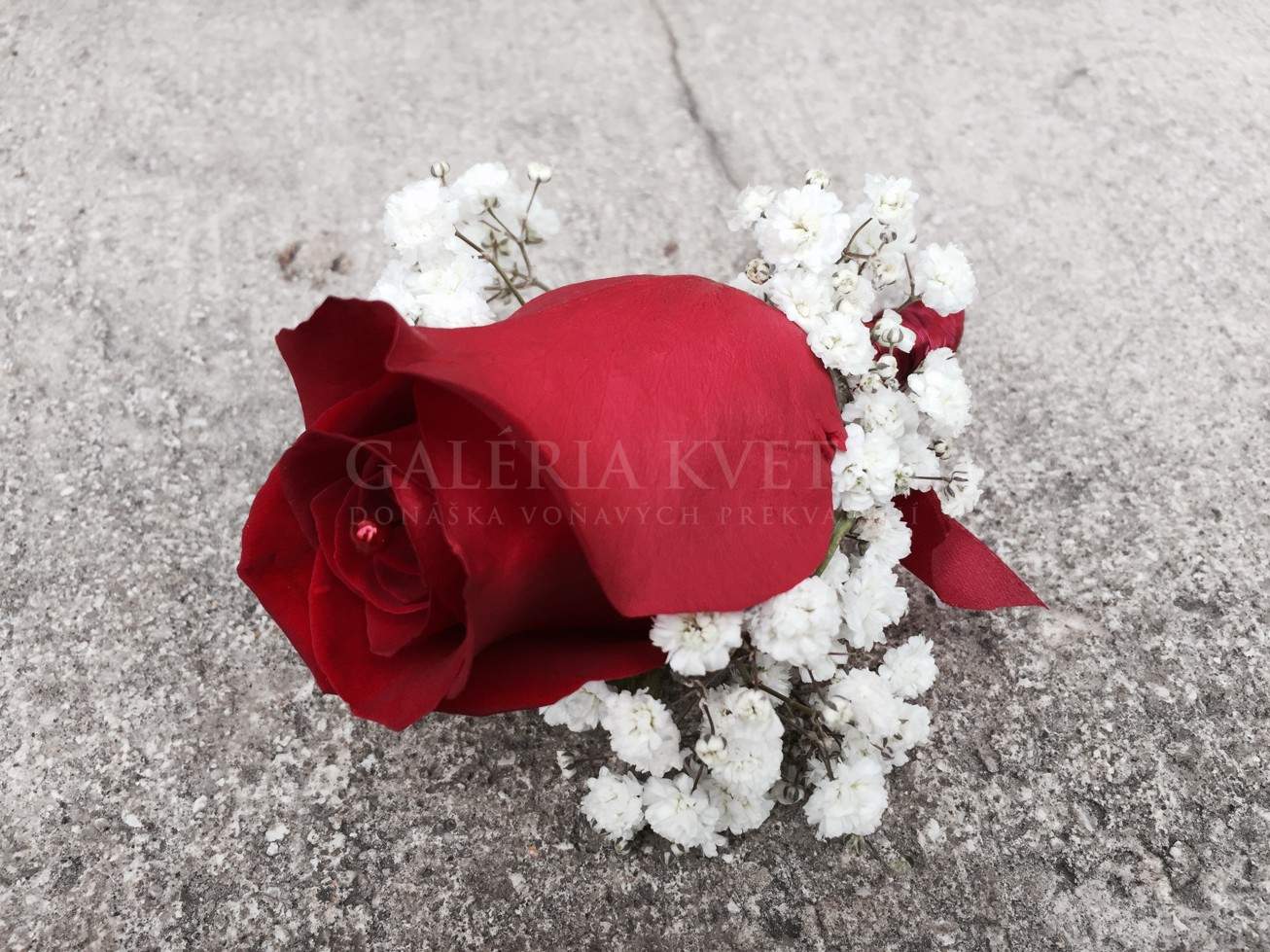 Pierko pre romantických ženíchov z overenej klasiky - červená ruža, jemne dozdobená gypsou bude neodmysliteľnou súčasťou Vášho veľkého dňa. Farbu ruže je možné prispôsobiť požiadavkám ženícha a nevesty.