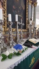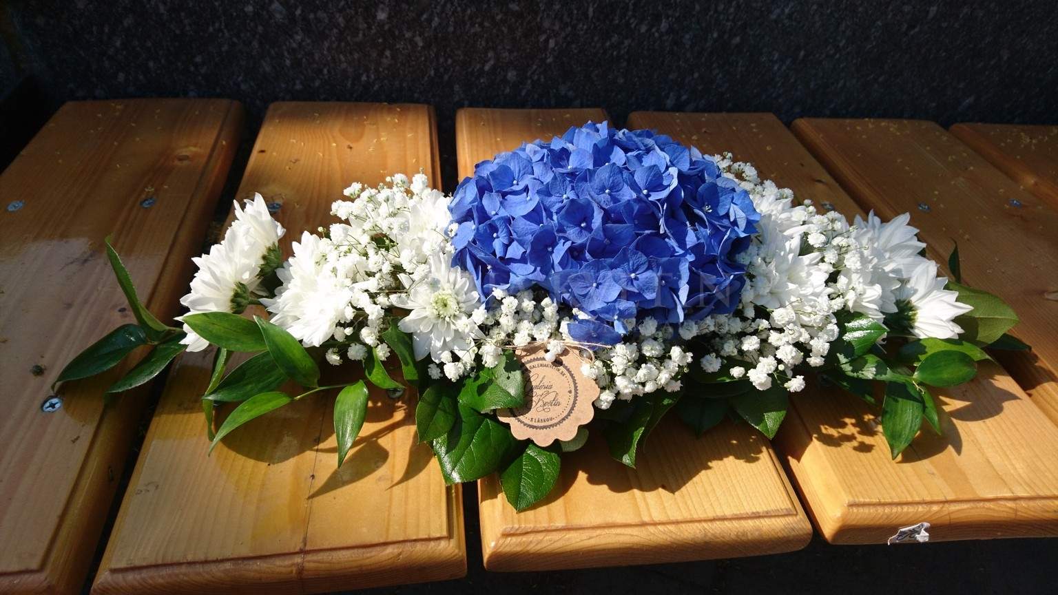 Kráľovská modrá farba hortenzie bola hlavnou požiadavkou nevesty na jej veľký deň. Svadobná kytica Modrý diamant, aranžmán Modrý diamant umiestnený na oltár evanjelického kostola na Panenskej ulici v Bratislave a decentá výzdoba auta Ruža v bielom boli pripravené ako si nevesta priala.