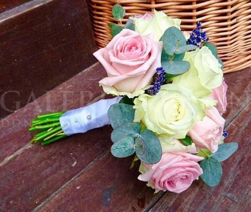 Táto nežná kytica obsahuje voňavý eucalypthus a levanduľku, ktoré sú zakomponované medzi ružami v ružovej a bielej farbe. Kytica vyniká svojou jednoduchosťou a je vhodná ako k zdobeným tak aj k jednoduchým svadobným šatám. Pri pohľade na krásnu nevestu s touto kyticou, ženích nebude váhať povedať "áno".